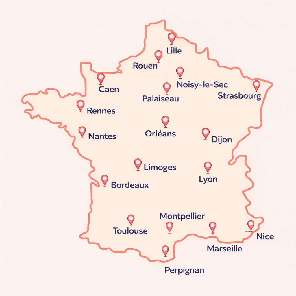 Île-de-France, Pays de la Loire, Centre-Val de Loire, Bretagne, Nouvelle-Aquitaine, Auvergne-Rhône-Alpes, Provence-Alpes-, Côte d’Azur